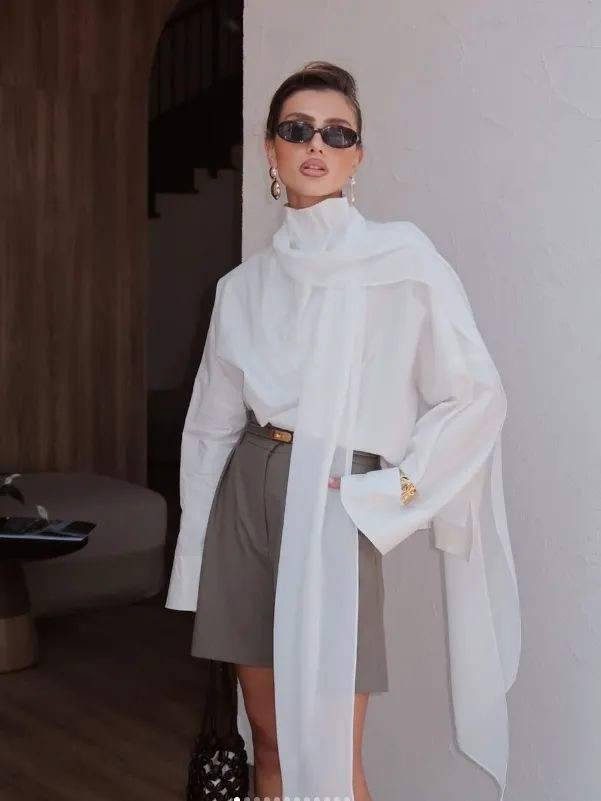而衬衫若带点浪漫的褶皱、泡泡袖等设计,